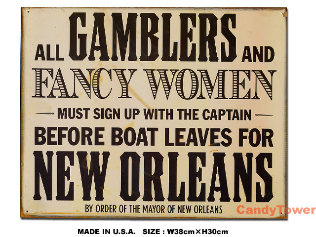 ニューオリンズはまさにギャンブルで有名な場所!アメリカンブリキ看板 すべてのギャンブラーに告ぐ! 価格: 2,800円 レビュー評価: 0.0 レビュー数:0 「すべてのギャンブラーとその愛人に告ぐ!(ギャンブルの街、)ニューオリンズに行くなら、出航前に船長の許可を得ること! ニューオリンズ州知事より」ギャンブルと言えばラスベガスのイメージが強いけど、アメリカ人にはニューオリンズはまさにギャンブルで有名な場所! ミシシッピ川を行き来する船が昔からあるんだけど、その乗り場にこういう看板があったんだろうね!それをちょこっとジョークにしてリ・デザインしたって看板! ニューオリンズって英語が入っているってことで選んじゃう人ももちろんアリ!英語をシーンに飾るとより向こうっぽいシーンになるからね!щ( ̄∀ ̄)шサイズ:縦30cm×横38cm(約) MADE I Supported by 楽天ウェブサービス |